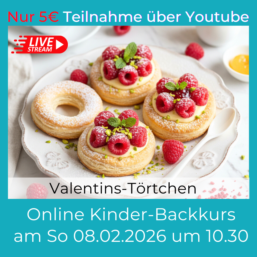 Teilnahme über Youtube Kinder-Backkurs am SONNTAG, 08. Februar 2026, ab 10.30 Uhr