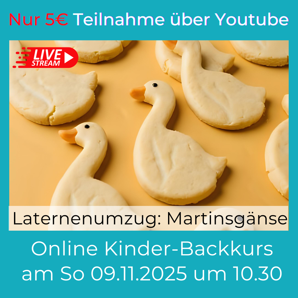 Teilnahme über Youtube Kinder-Backkurs am SONNTAG, 09. November 2025, ab 10.30 Uhr