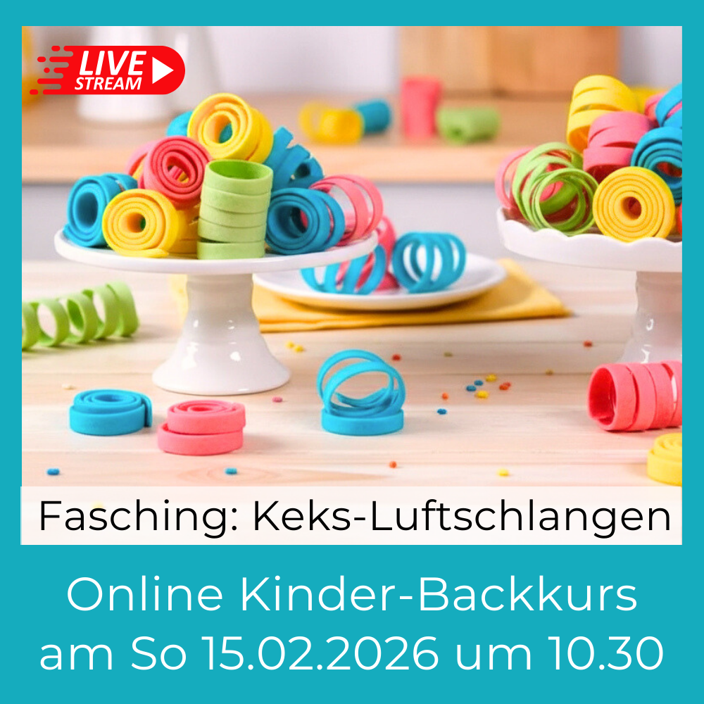 Teilnahme am LIVE Kinder-Backkurs über Zoom am SONNTAG, 15. Februar 2026, ab 10.30 Uhr